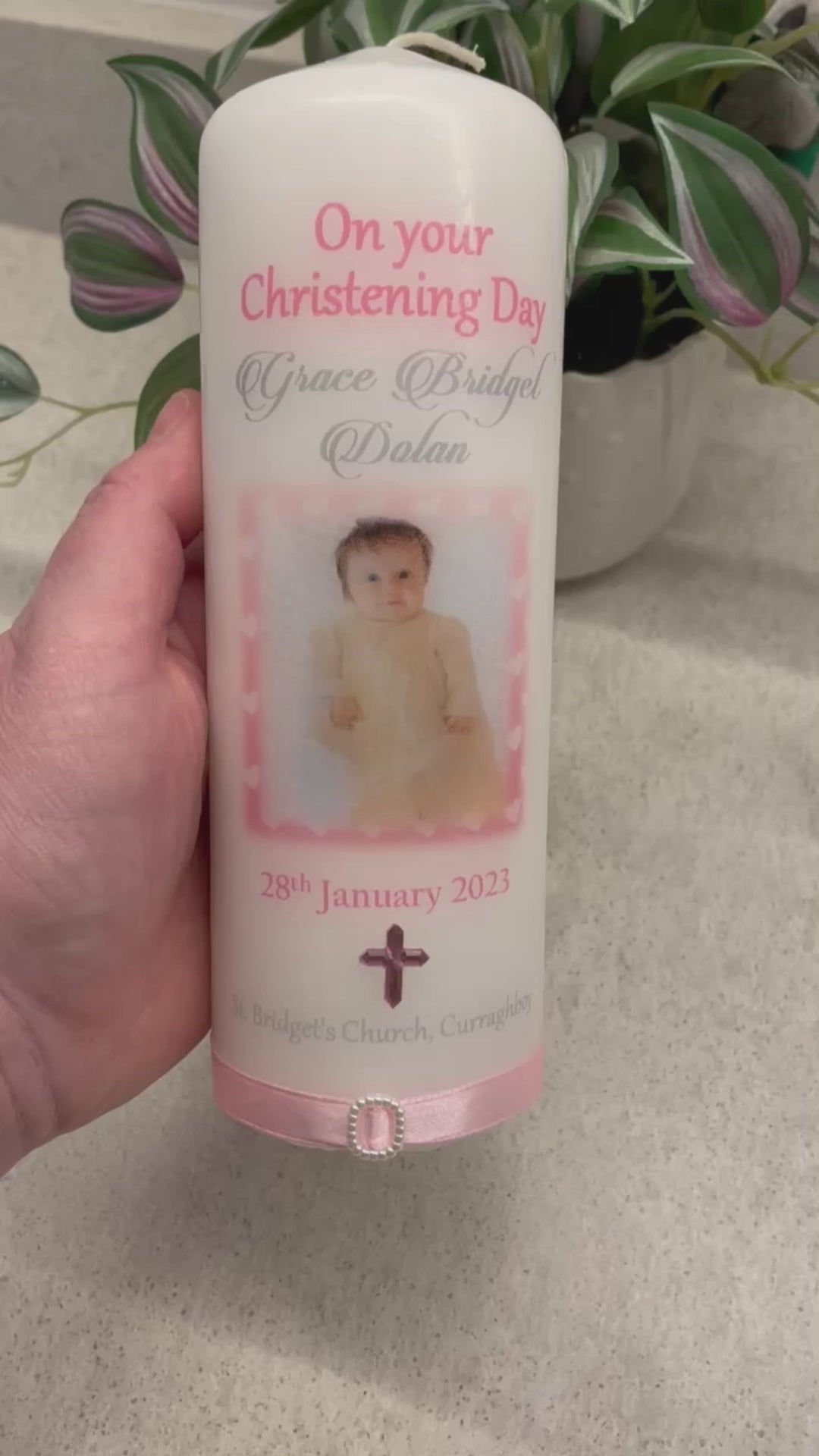 Candles are personalised on both the front and back depending on design chosen and typically includes name, photo, date, and wording of your choice on the back. Candles come carefully wrapped in cellophane or organza depending on design. If you have any questions about making additional changes to our products, please email us on hello@candlesbyoccasion.ie