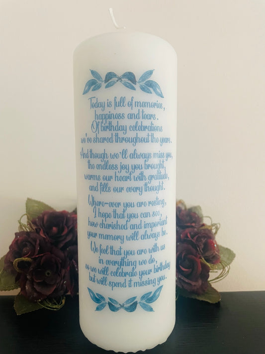 Floral Happy Heavenly Birthday Memorial Remembrance Candle