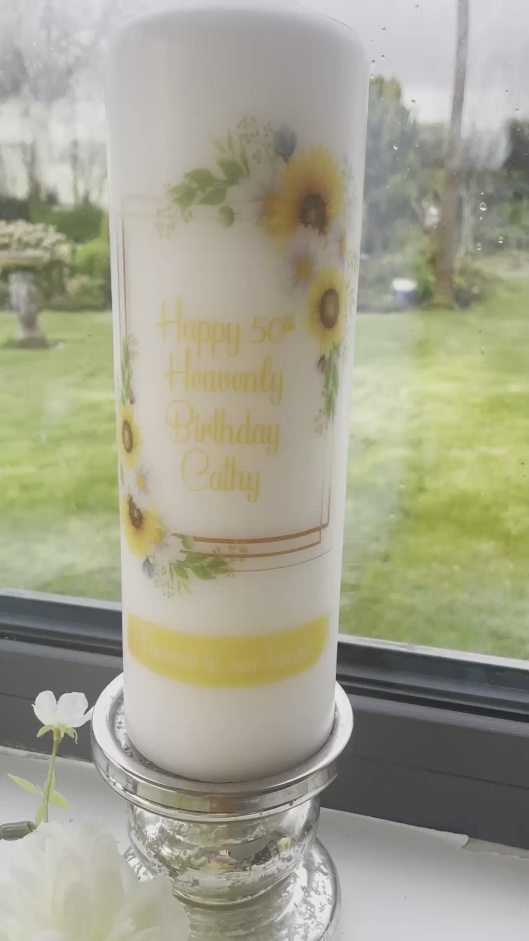 Embrace the memory of your beloved with our carefully crafted Sunflowers Heavenly Birthday Remembrance Candles.