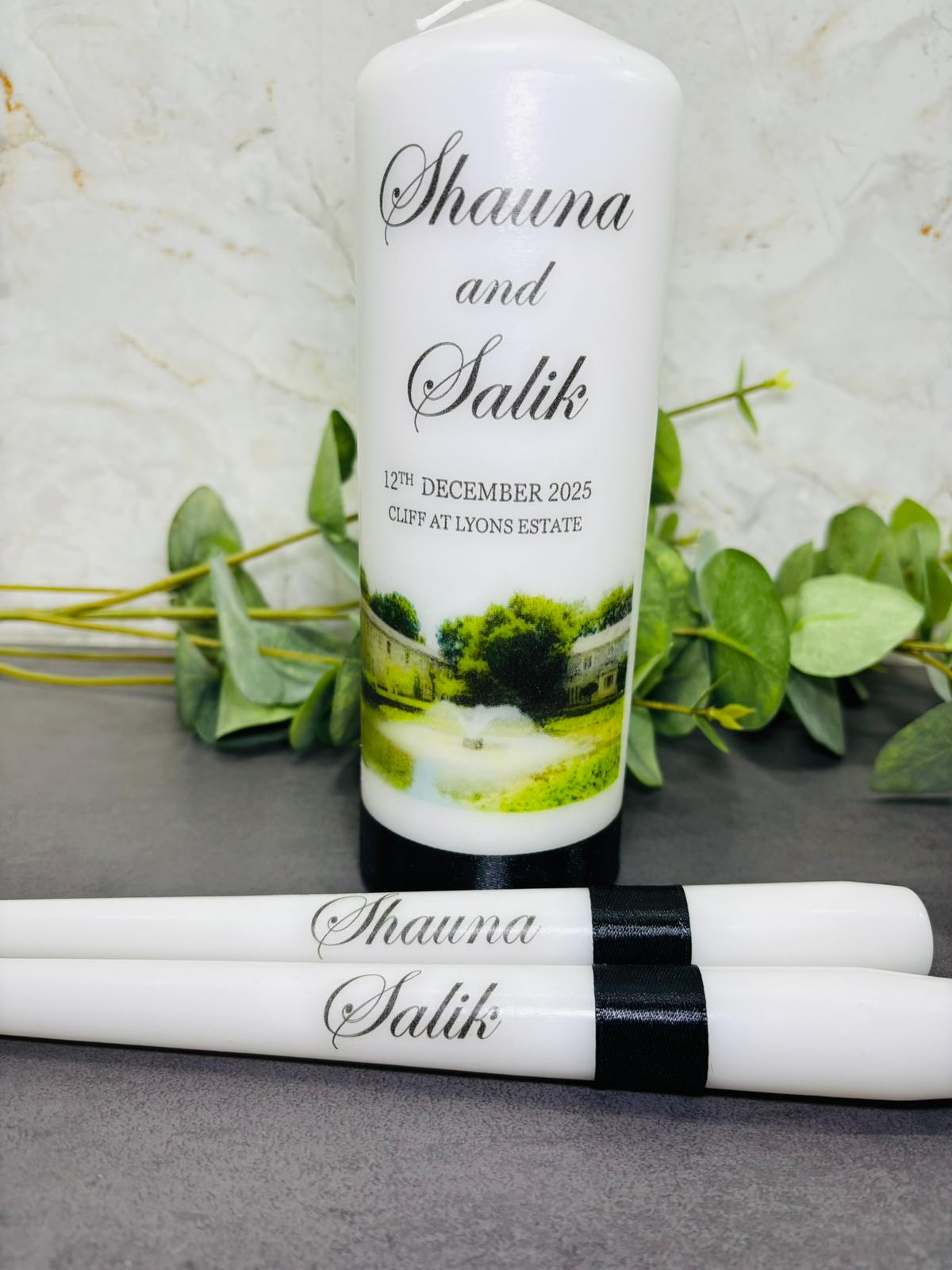 Add a soft, artistic touch to your wedding décor with our Watercolour Venue Candles. Send us a photo of your venue, and we’ll create a beautiful watercolour design inspired by it – perfect for adding a personal and romantic touch to your tables or ceremony.